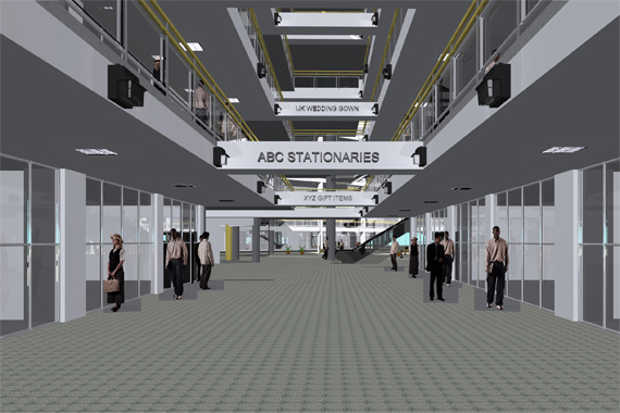 The shopping complex has shops, offices, cinema, gyms, swimming pools, pool bar, event halls and open spaces for outdoor events.