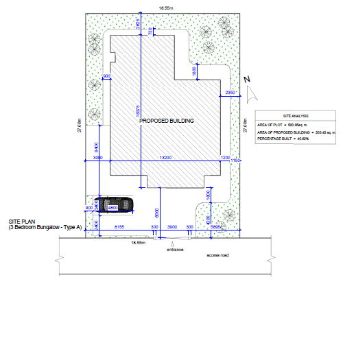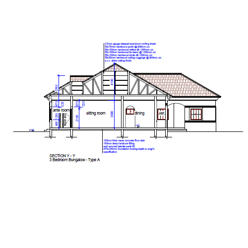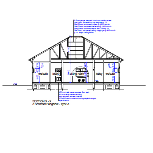 Three (3) bedroom bungalows for medium income earners – This is an all-en-suite three (3+1) big sized bedrooms fully detached house designed with capacity to easily transit from a regular family house to a deluxe and comfortable home for a medium sized family. It is sitting on 500sqm land space. All rooms come with wall-to-wall wardrobes; master's bedroom is created to accommodate a Jacuzzi; a large living room with an ante-room and guest toilet; a dinning room; a large sized kitchen space with store; and also, a laundry with a janitor.